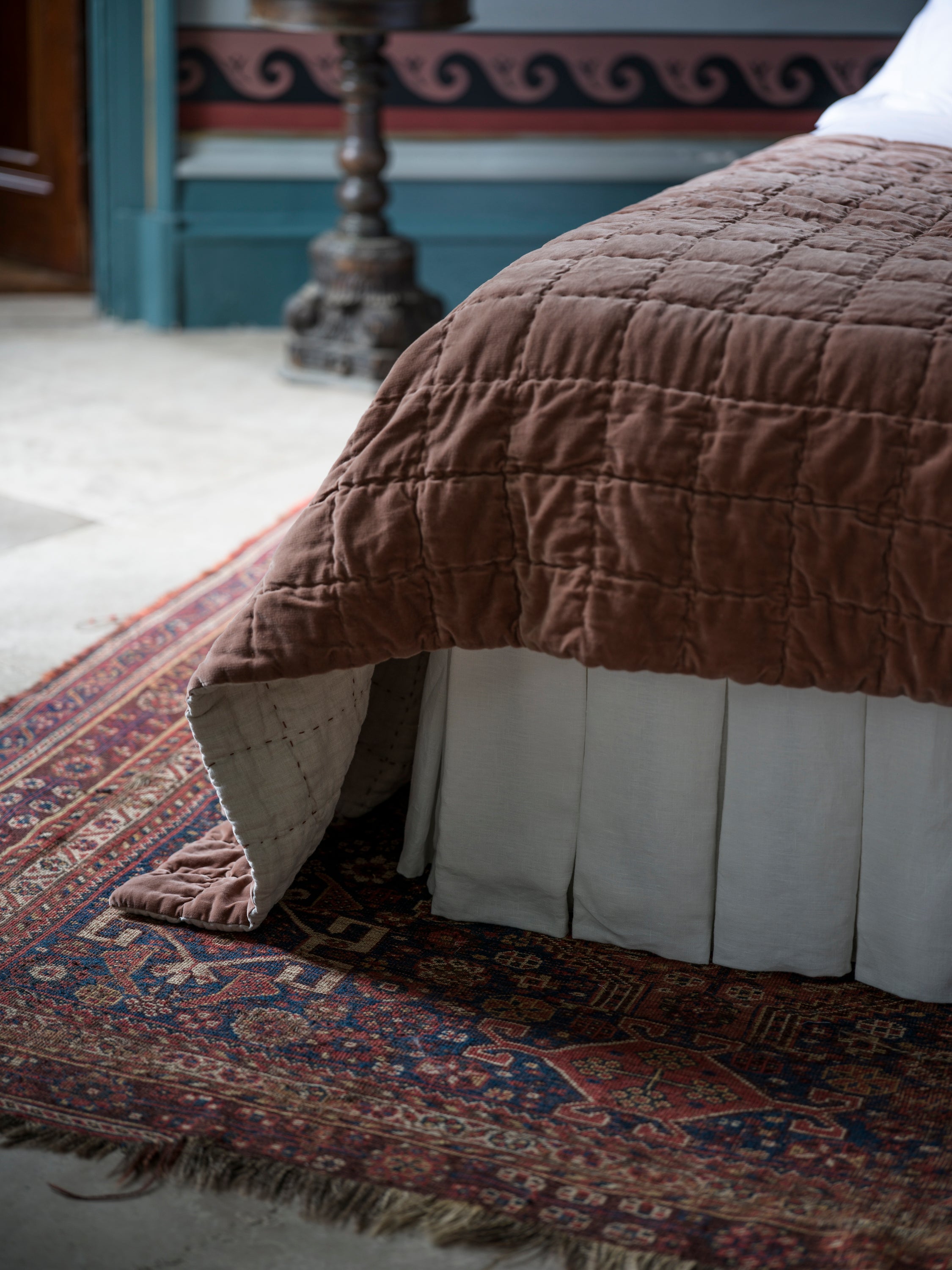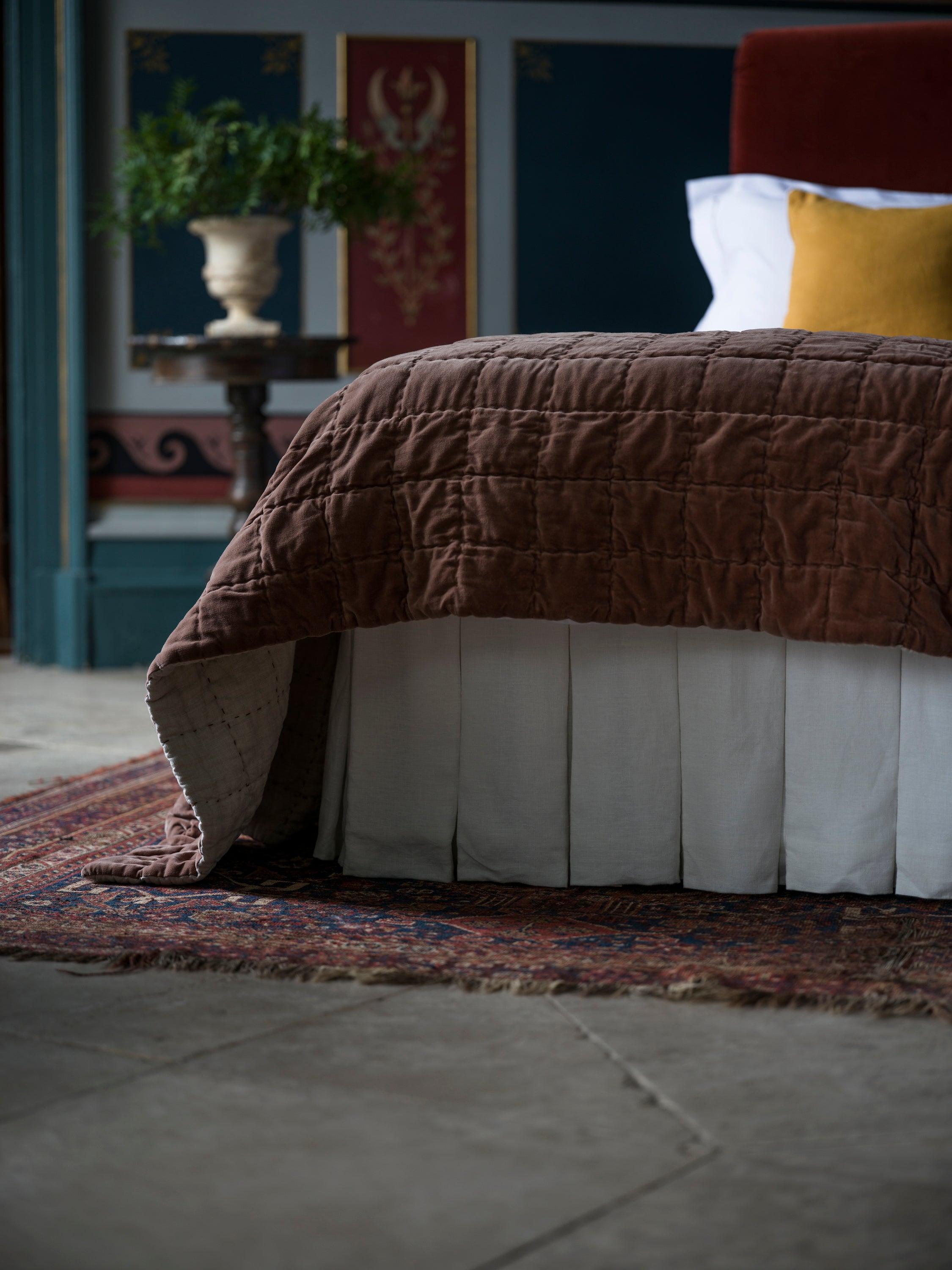 This linen is woven in Lithuania, the oldest and largest mill in the Baltics. It is then skilfully sewn together by the hands of our talented seamstresses in Durham.